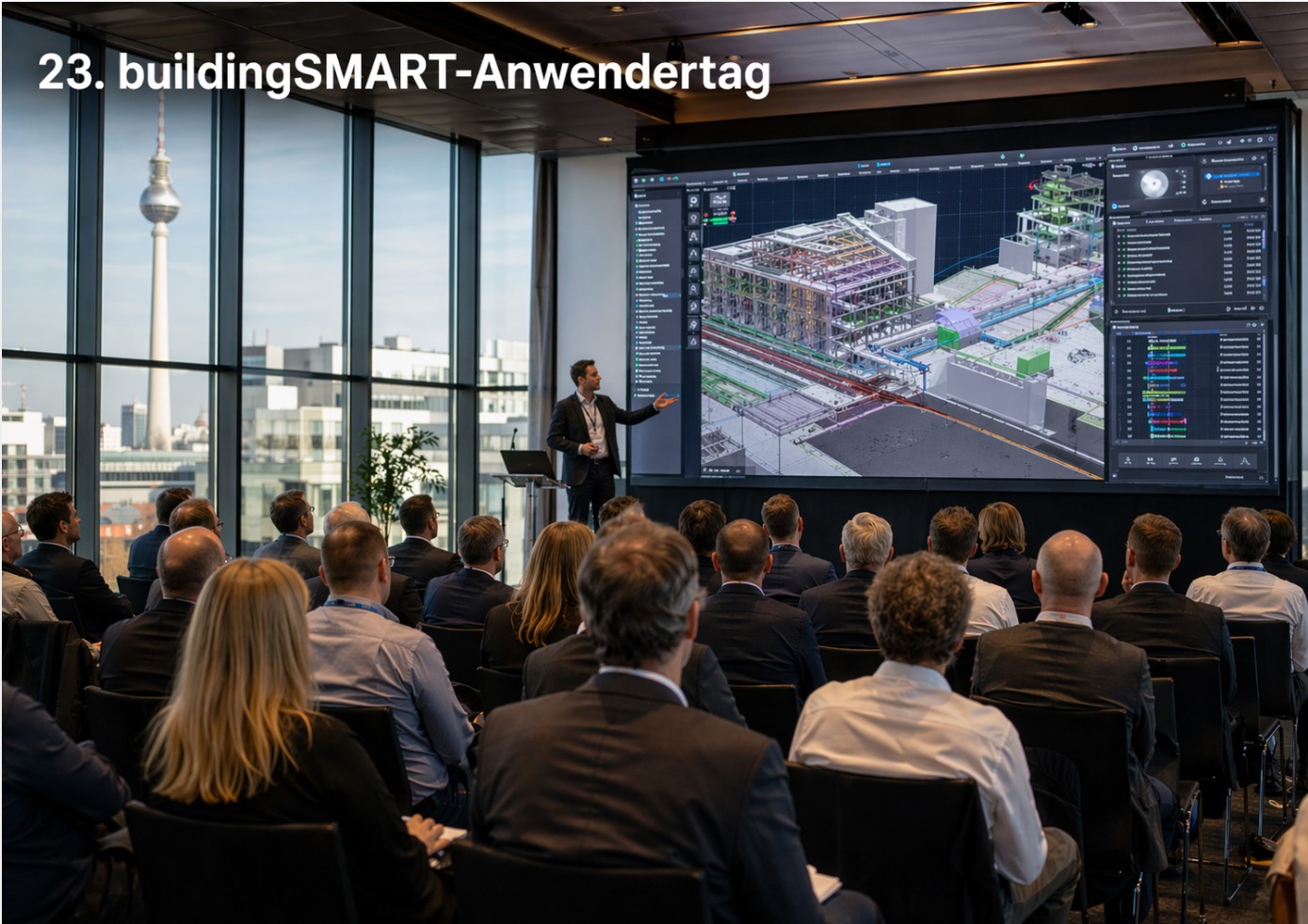 Am 13. Mai 2026 lädt buildingSMART Deutschland zum 23. buildingSMART-Anwendertag nach Berlin ein. Veranstaltungsort ist das Hotel Berlin, Berlin. Nach Angaben des Veranstalters umfasst das Programm 28 Vorträge; das offizielle Terminfenster ist mit 10:00 bis 16:30 Uhr angegeben, während das Programmschema bereits einen gemeinsamen Auftakt ab 09:30 Uhr vorsieht.